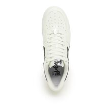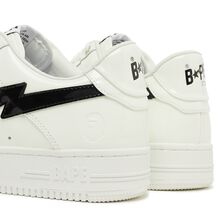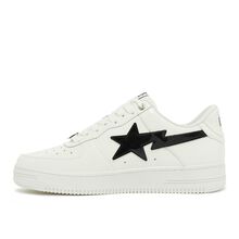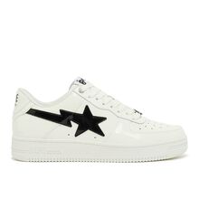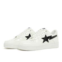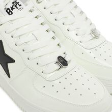 Bei dem Bape Sta #2 M1 von A Bathing Ape wird das weiße Leder-Upper mit der legendären Bape-Sternschnuppe in schwarzer Lack-Optik kombiniert. Die Belüftungslöcher an der Toe Box und die bequeme Zwischensohle sorgen für angenehmen Tragekomfort. An den austauschbaren Schnürsenkeln ist der labeltypische Affenkopf als silberner Anhänger zu finden.