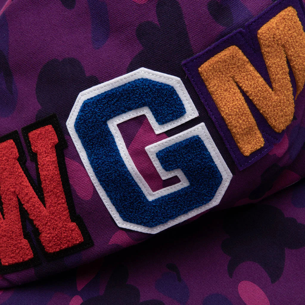 Composed of cotton, the A Bathing Ape Abc Camo Shark Full Zip Hoodie takes on a premium aesthetic. The silhouette features a full-zip closure in addition to ribbed detailing that can be found at the trims. The kangaroo pocket is seen, while the signature hood spotlights embroidered patchwork and printed motifs that spotlight the brand’s heritage.