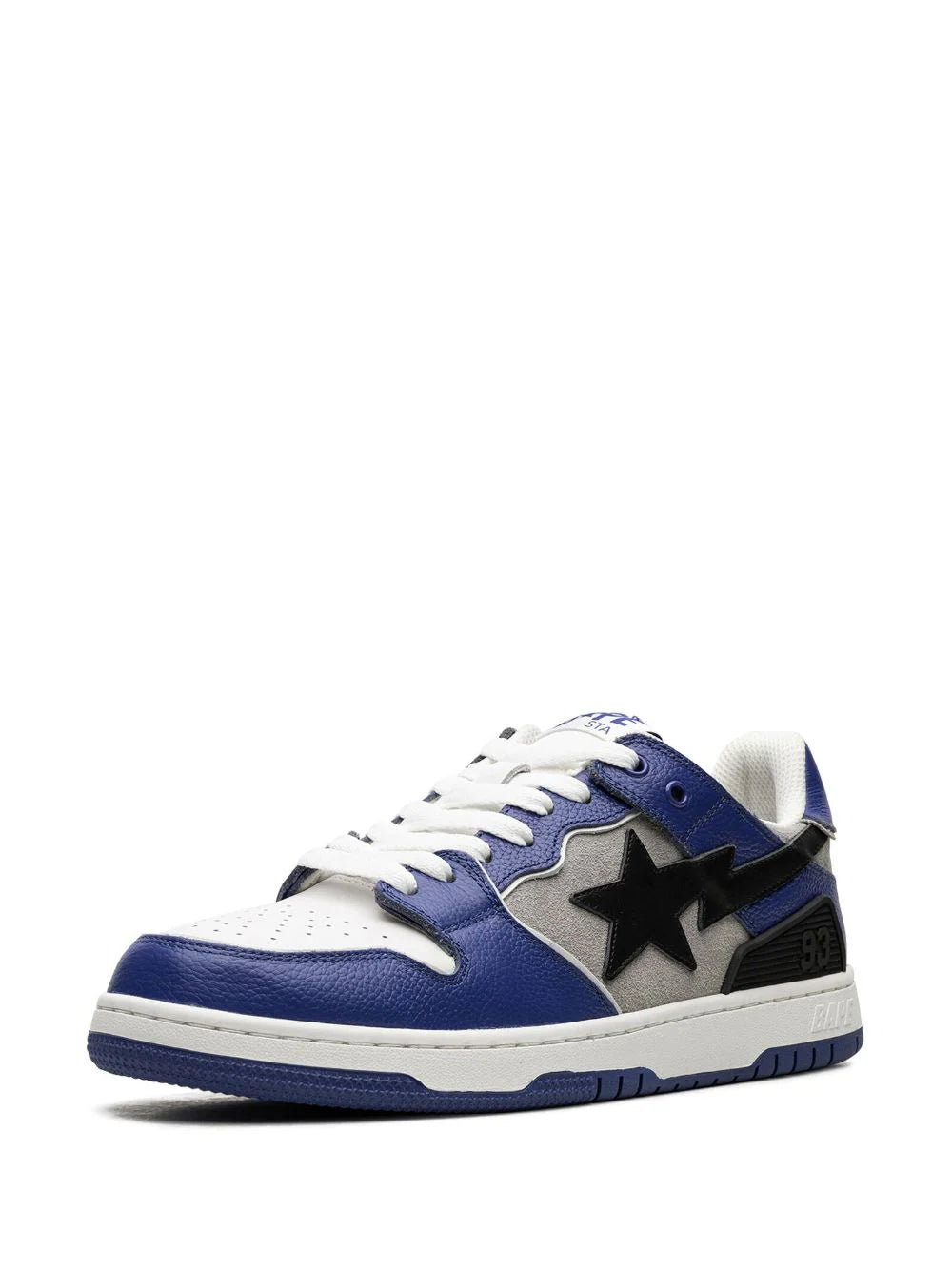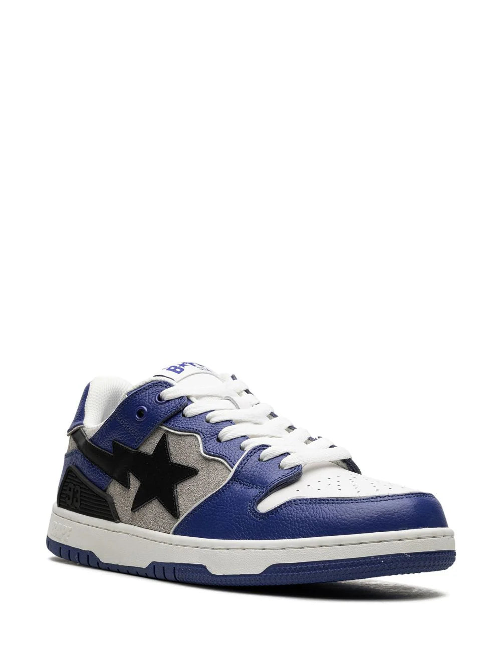 Navy blue, black and white, color matching design, suede stitching, leather trim, hollow toe, front lacing, tongue with logo applique, insole with logo, rubber flat.
