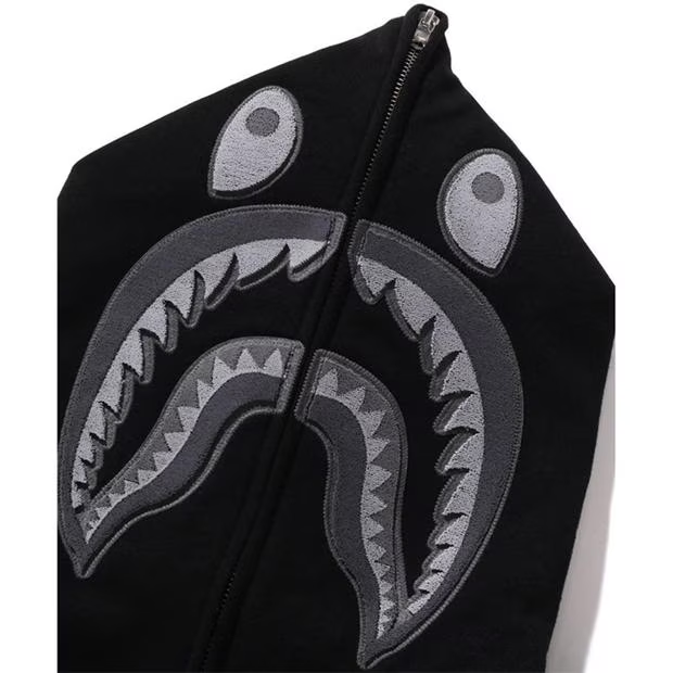 - BAPE's signature Shark Face design and varsity lettering on the hood provides instant brand recognition.