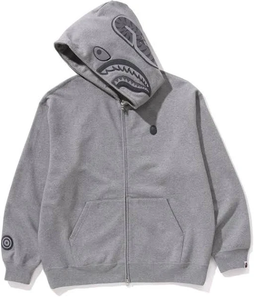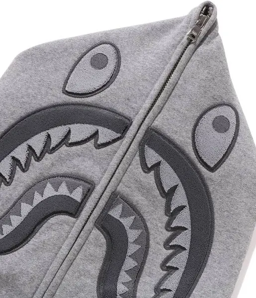 - BAPE's signature Shark Face design and varsity lettering on the hood provides instant brand recognition.