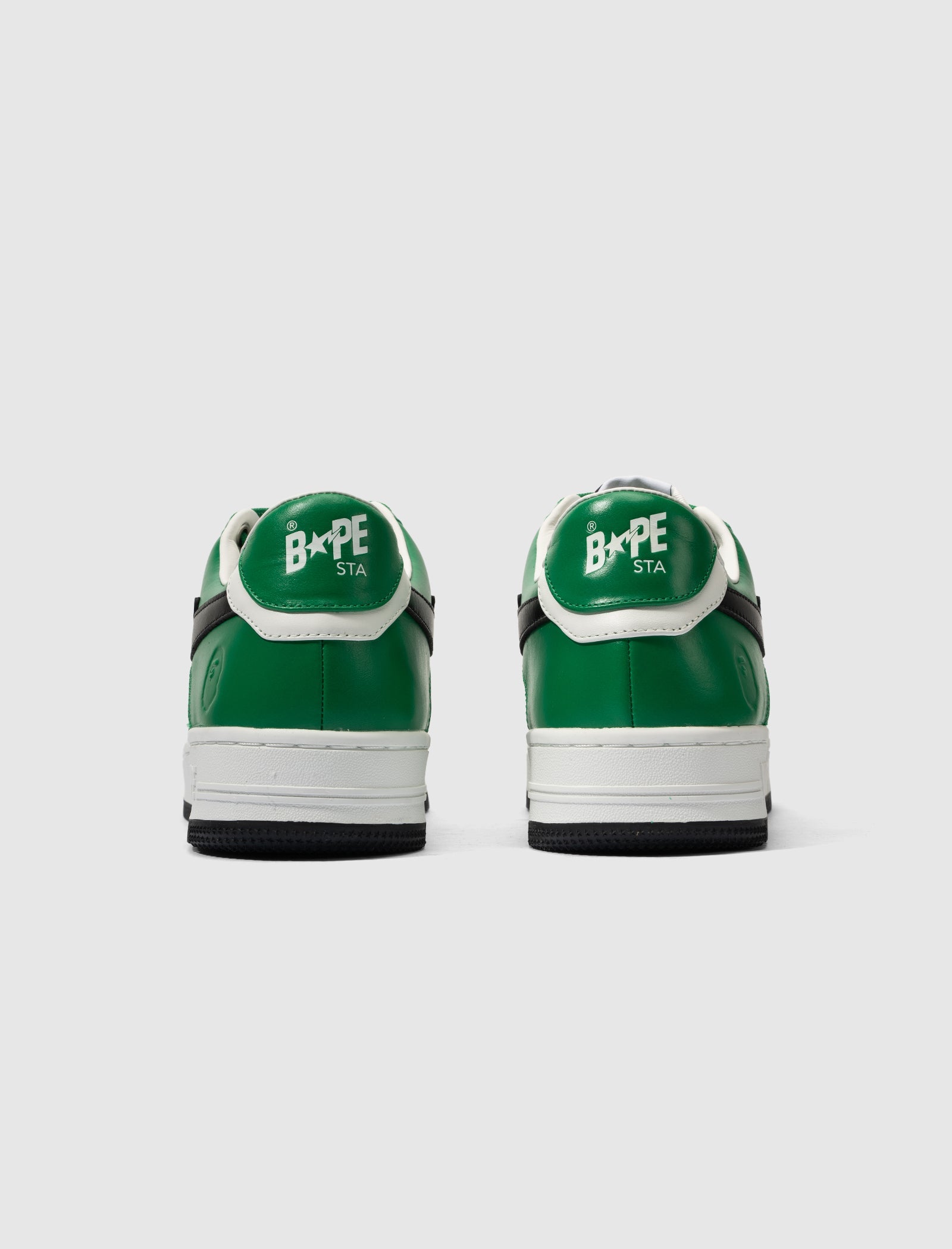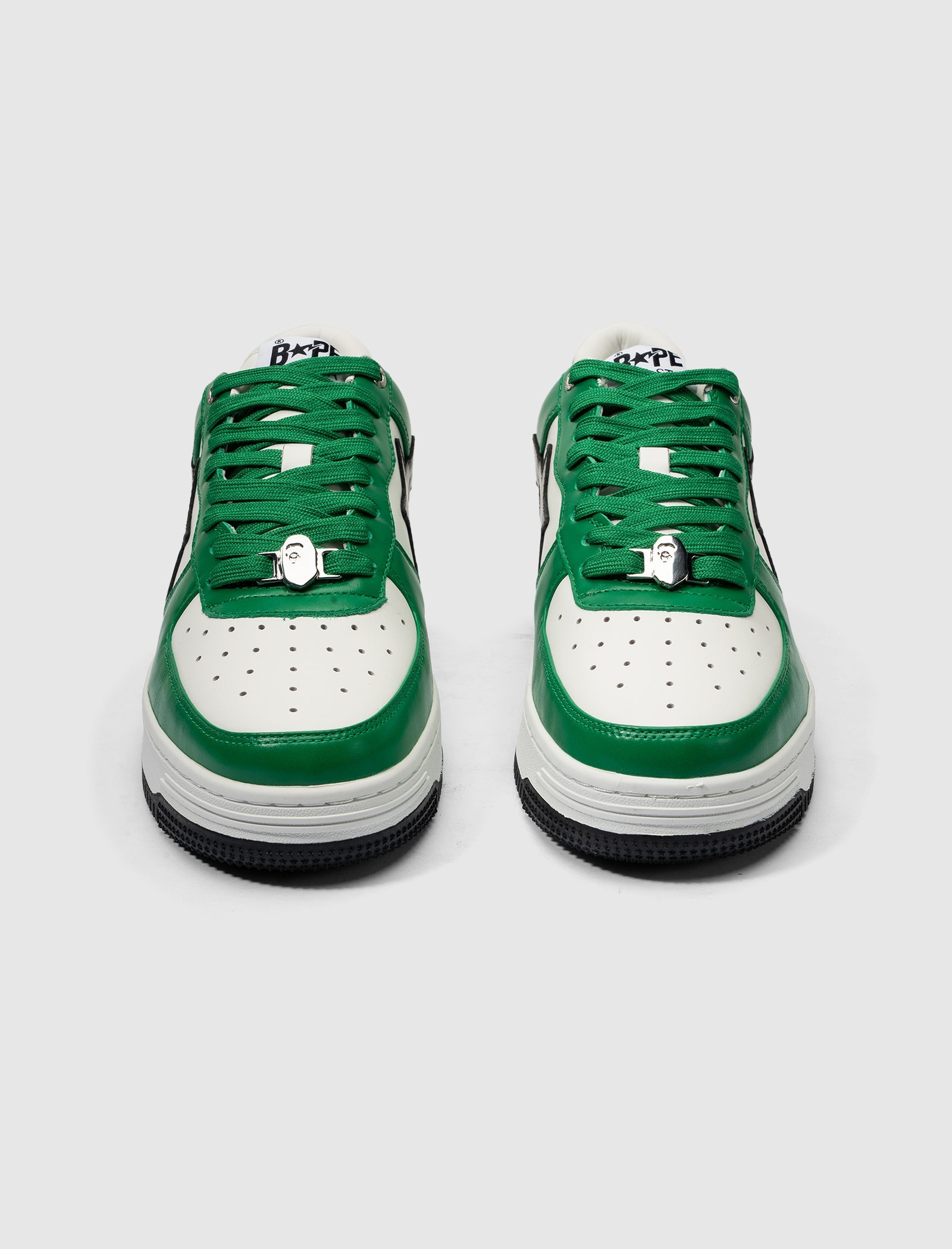 Low top sneakers. Leather upper. Perforated toe box. Leather overlays around the toe, eyelet panels, and heel counter. Leather logo overlay on the heel with a printed logo motif at the center. Leather logo motif shaped patches stitched on the side panels. Front lacing. Logo motif shaped lace dubrae on the bottom lace. Rubber midsole. Rubber outsole.