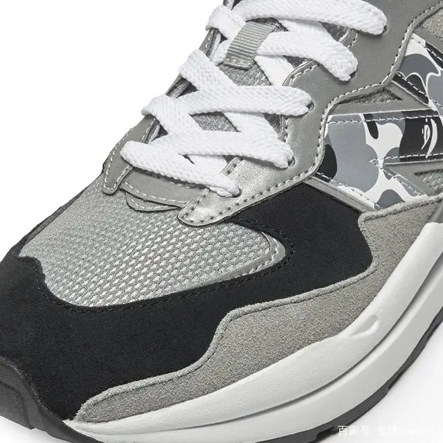 This time the joint name will bring three different colors, respectively, green, gray and floral. The first two are a mix of mesh, suede and leather materials, and the last one is made up of more vibrant color blocks, with three pairs of shoes belonging to three different styles. The tongue and insole are printed with the BAPE Logo, the "N" on the side of the shoe becomes BAPE's signature camouflage style, the heel is embellished with a shark pattern, and the overall detail is full of the co-name flavor.
