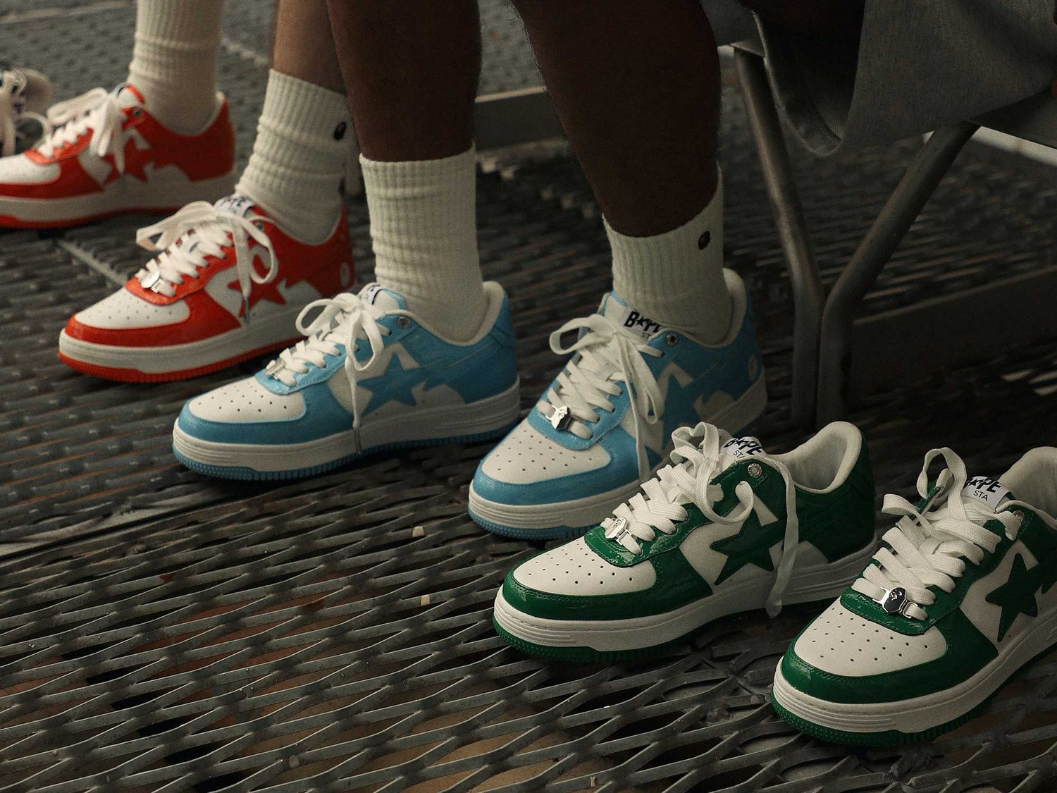 Updating the retro-inspired low top with a sleek and minimalistic touch, the A BATHING APE Bapesta #6 presents a distinctive design. Crafted from smooth leather, the upper showcases a tonal Sta logo and a debossed Ape Head graphic on the lateral heel. Bapesta branding is featured on the woven tongue tag and back tab, and a second Ape Head emblem. The sneaker is anchored by a robust rubber cupsole, providing both durability and a polished appearance from top to bottom.